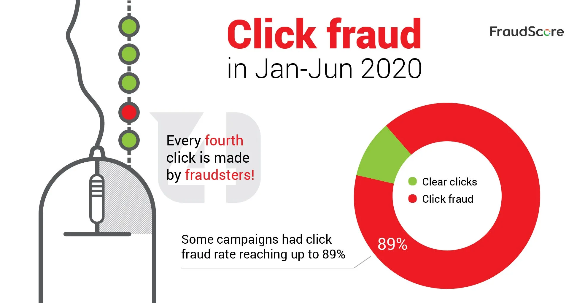В первые три месяца 2020 года FraudScore обработала десятки миллиардов кликов, и около 25% из них оказались фродовыми, при этом в некоторых кампаниях уровень клик-фрода достигал 89%.