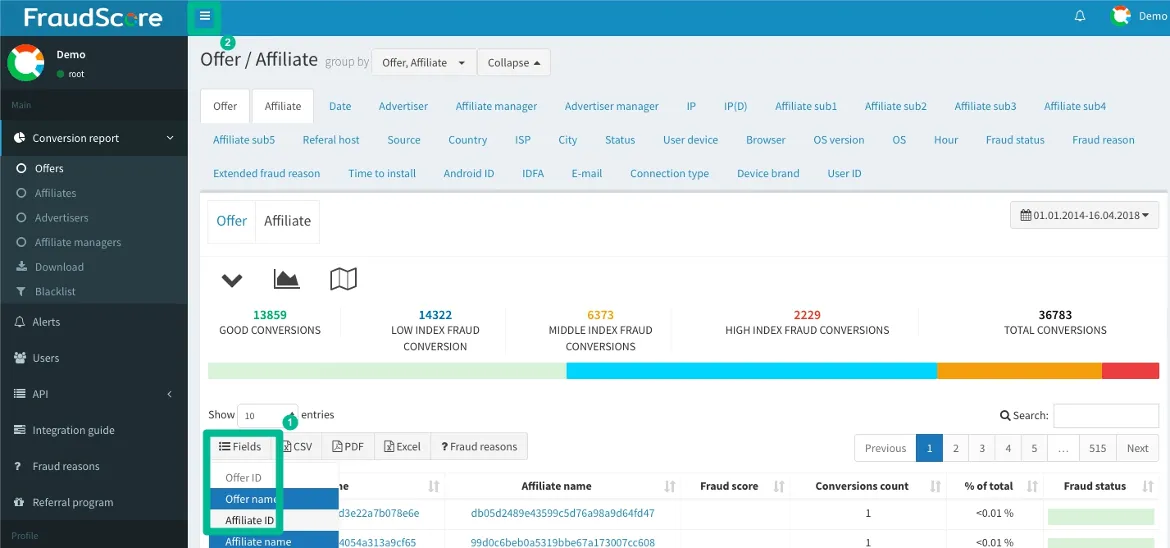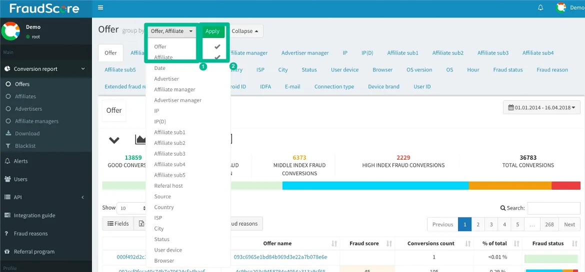 Расширенное меню группировки для FraudScore.Action