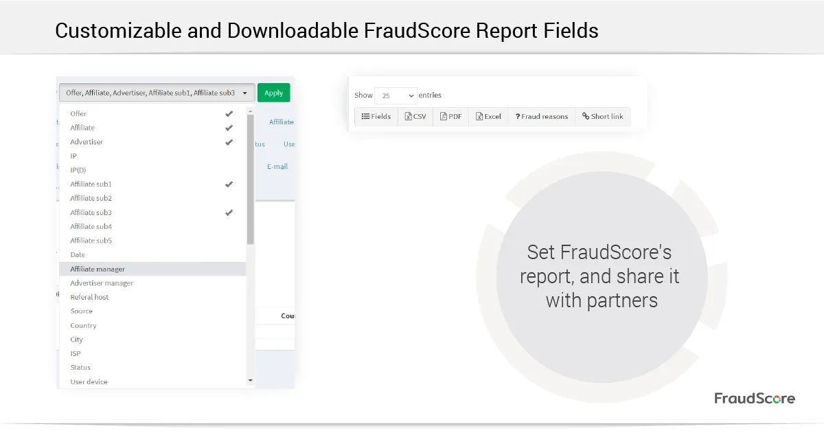 Second, you are able to set the fields in the report, including what data to show or hide from a partner. Simply select the data set and you are good to go. This option also allows you to set different reports for different partners. Simply customize the fields and download the reports.
