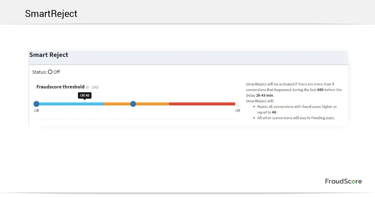 Note that you need to consult your FraudScore’s manager to make sure that SmartReject is available for your marketing platform.
