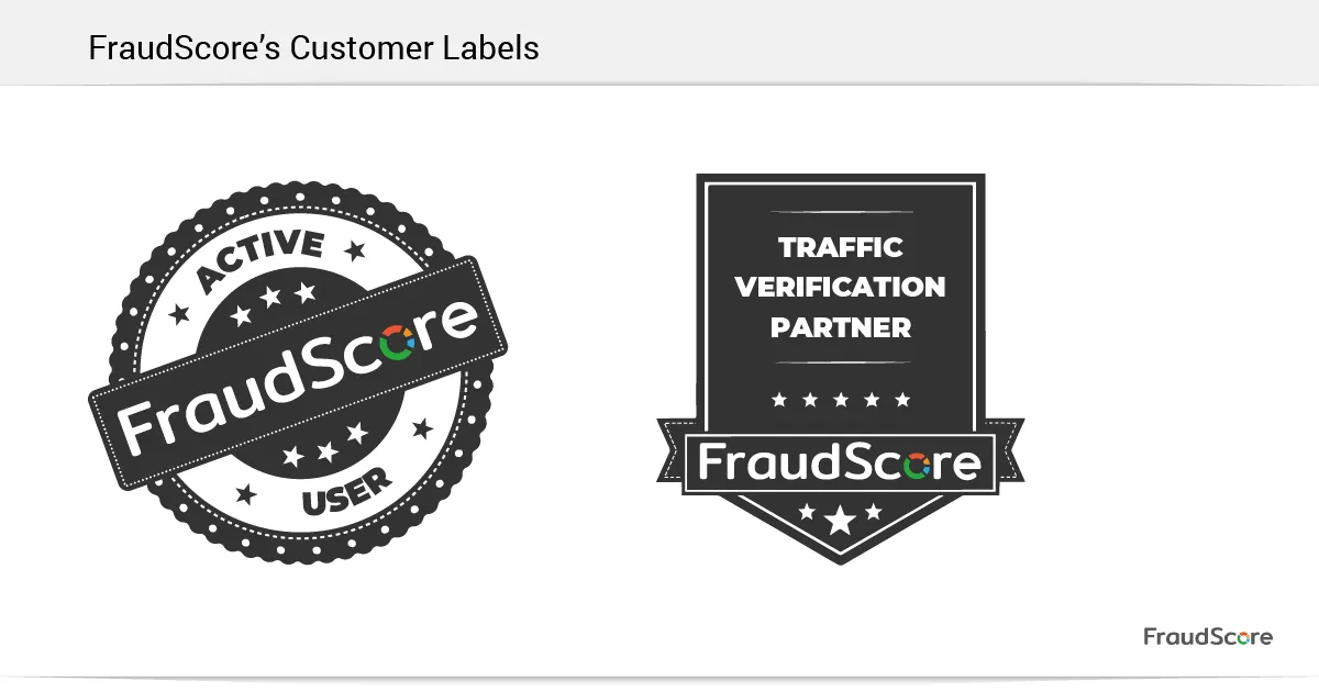All FraudScore clients can get a label to post to social media or their website. The label symbolizes that a company is serious about its traffic quality and is using FraudScore’s solution to fight fraudsters. Companies that are open about their viewpoint towards ad fraudsters are welcome to use the label and confirm that ad fraud is on their radar.
